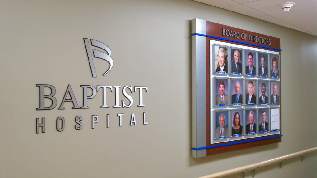 Board of Directors lobby photo display for Baptist Hospital. Built and installed by signgeek.