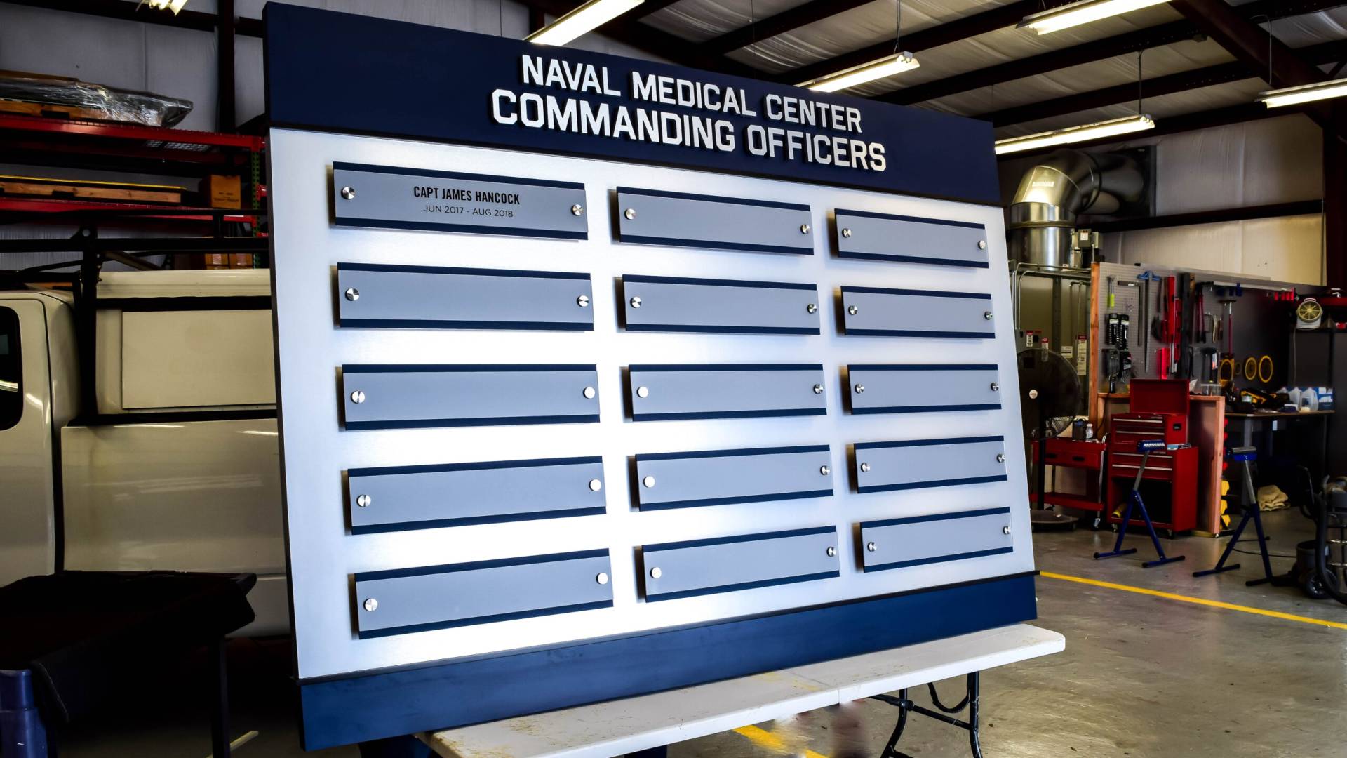 After attending a signgeek display unveiling at a fellow military installation, Marine Corps Base Camp Lejeune in North Carolina reached out to us to fabricate a custom recognition piece of their own. The goal was to create a dignified, high-impact board honoring the legacy and service of commanding officers who have led on the base.