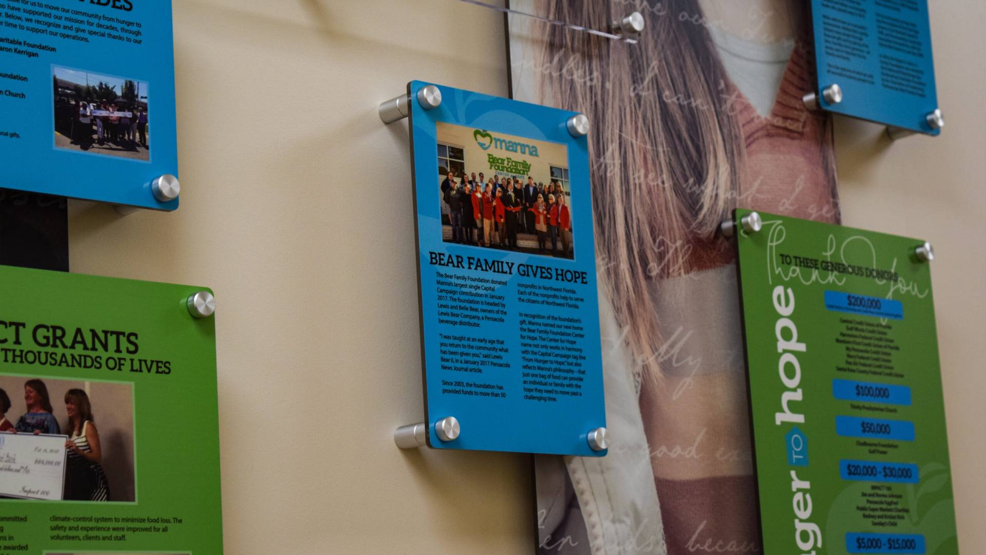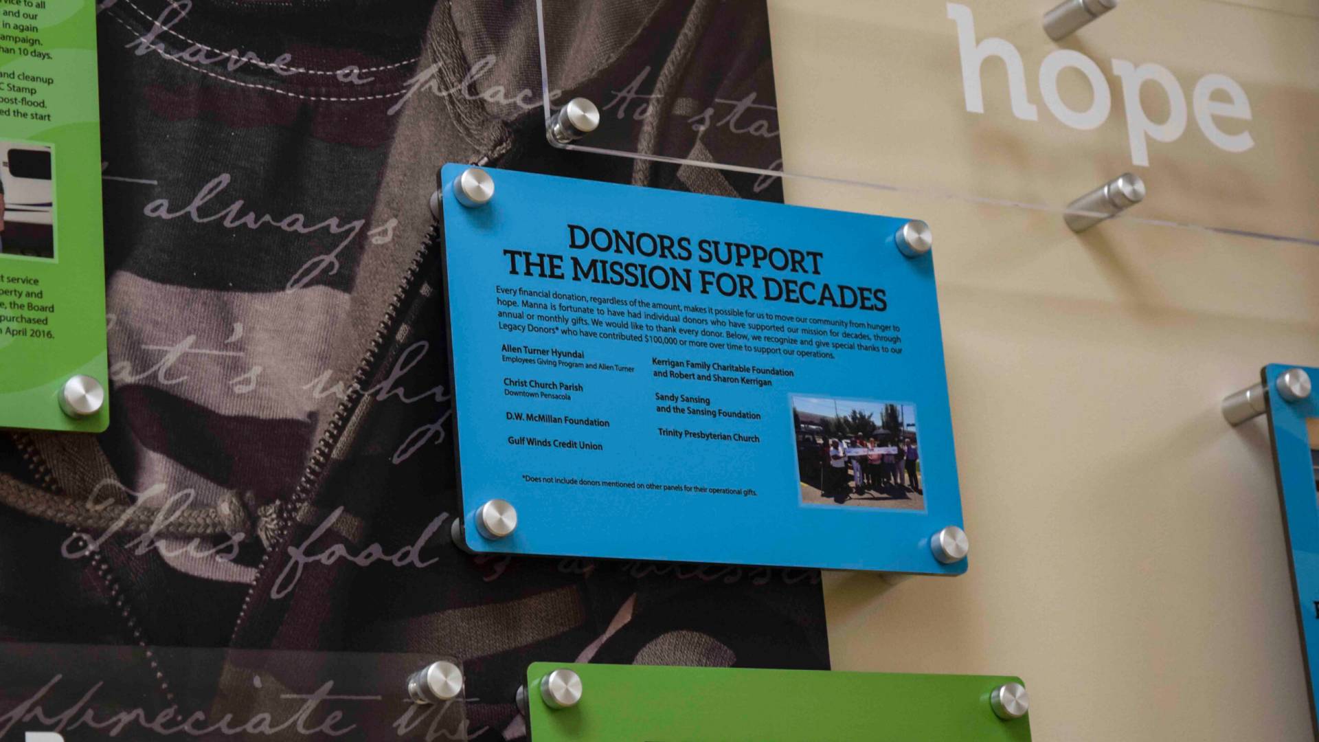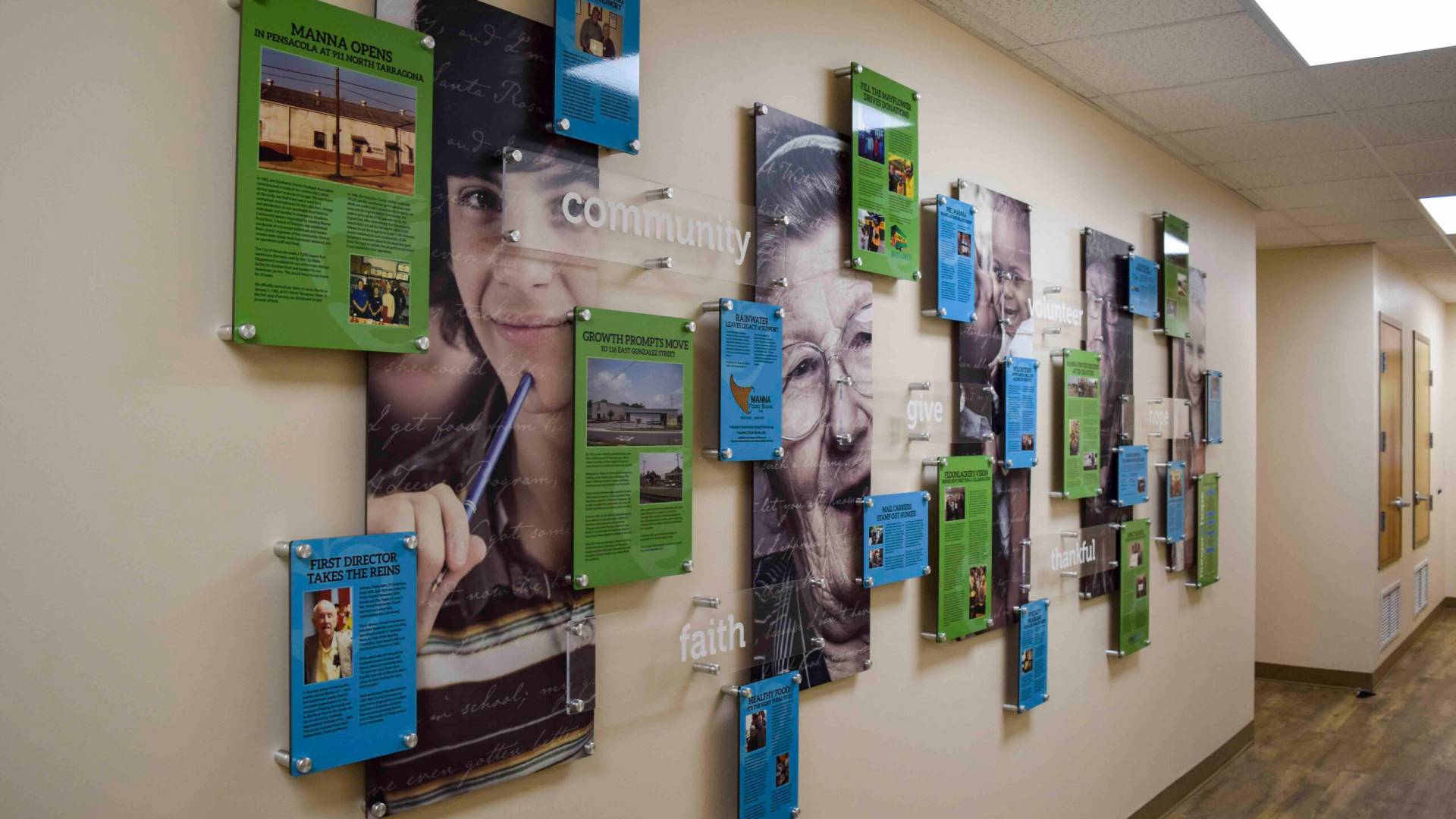 Manna Food Pantries | Recognizing key donors and displaying company history.