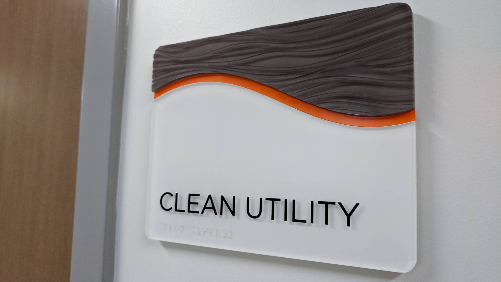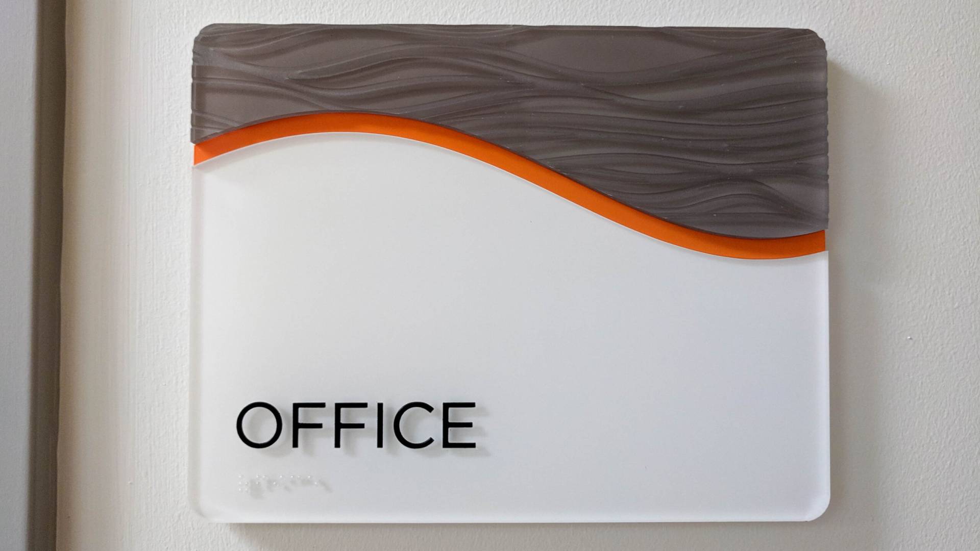 signgeek went to the drawing board, resulting in the fabrication of a wayfinding system with 3form wave-patterned headers. We used our CNC routing machine to cut the headers. Then, technicians placed the acrylic headers over an orange accent. Our craftsmen painted each accent with our high quality Matthews Paint station, as well as laser cut each individual accent. Our team painted the backers with West Florida branded colors. Last but not least, Raster Braille dots were added to the sign backers for full accessibility. The raised letters and braille enabled the signage system to satisfy ADA standards.