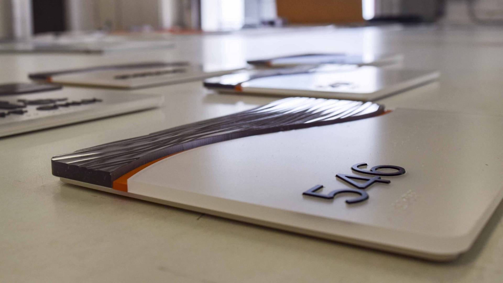 Lastly, we can’t help but mention the custom branded ADA compliant signage that was ordered to completely outfit the facility. For the backers, we cut acrylic and second-surface applied vinyl graphics with a Rowmark substrate face. The tactile raster braille bead lettering and raised, engraved characters are ADA compliant and make the facility friendly for all visitors.